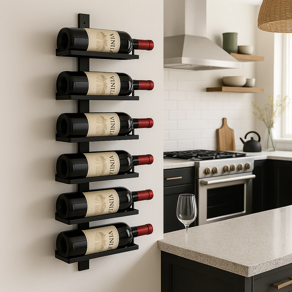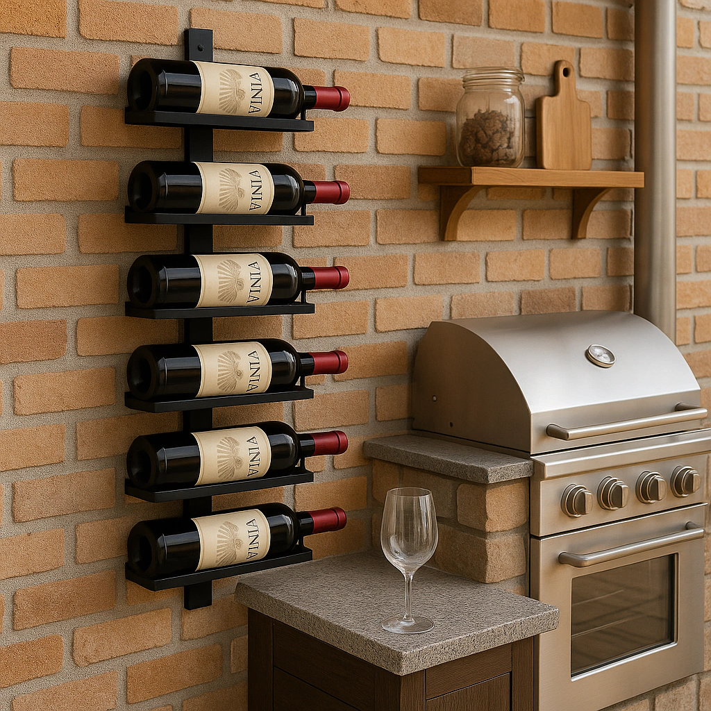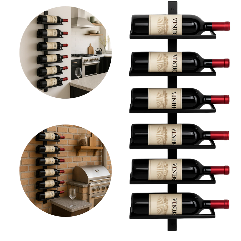 A Adega Suspensa de Parede Estilo Industrial é perfeita para quem quer exibir seus rótulos favoritos de forma prática e elegante. Com estrutura vertical e capacidade para 6 garrafas, ela transforma qualquer parede em um verdadeiro ponto de destaque decorativo.