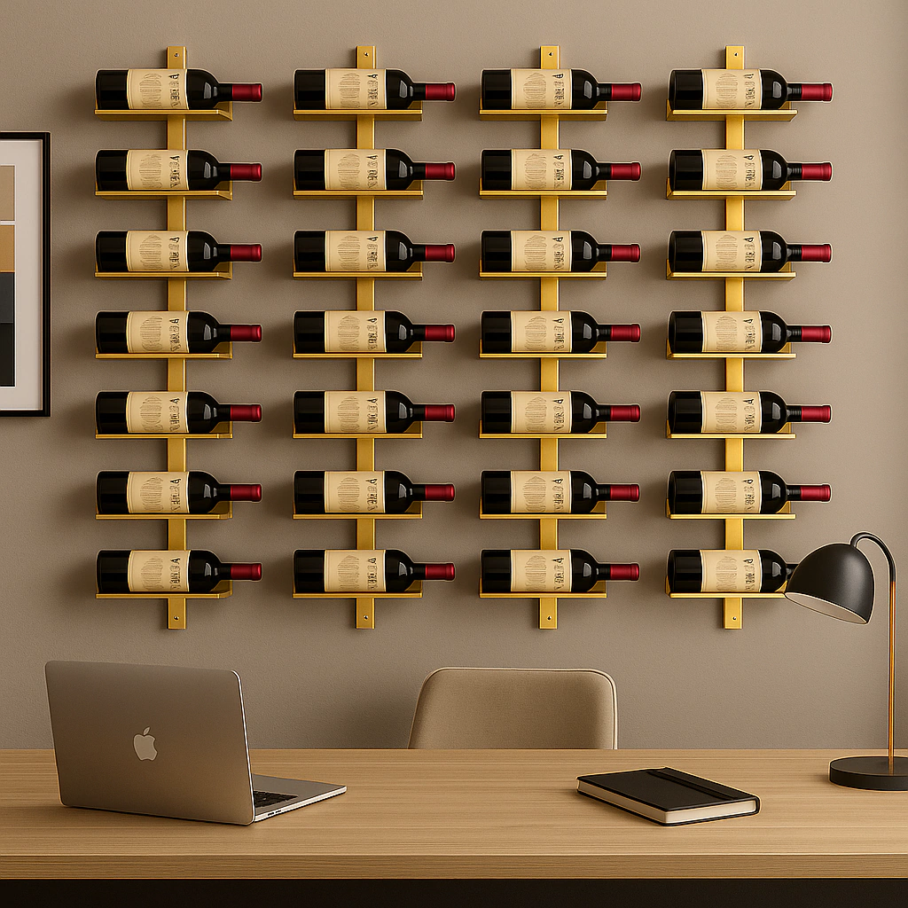 Basta fixar na parede e criar uma vinoteca com charme e personalidade. Aproveite o espaço vertical e mantenha seus vinhos sempre organizados e ao alcance.