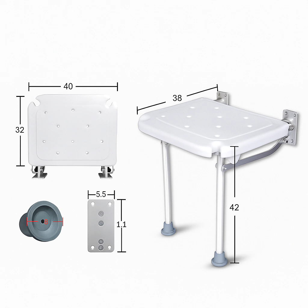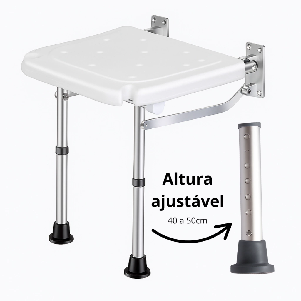 O novo modelo possui altura ajustável entre 40 e 50 cm (ajuste feito antes da instalação). Após fixado na parede, permanece firme e estável na altura definida. É uma solução eficiente para quem busca mais segurança durante o banho, principalmente para idosos, pessoas com mobilidade reduzida ou em pós-operatório 🦽
