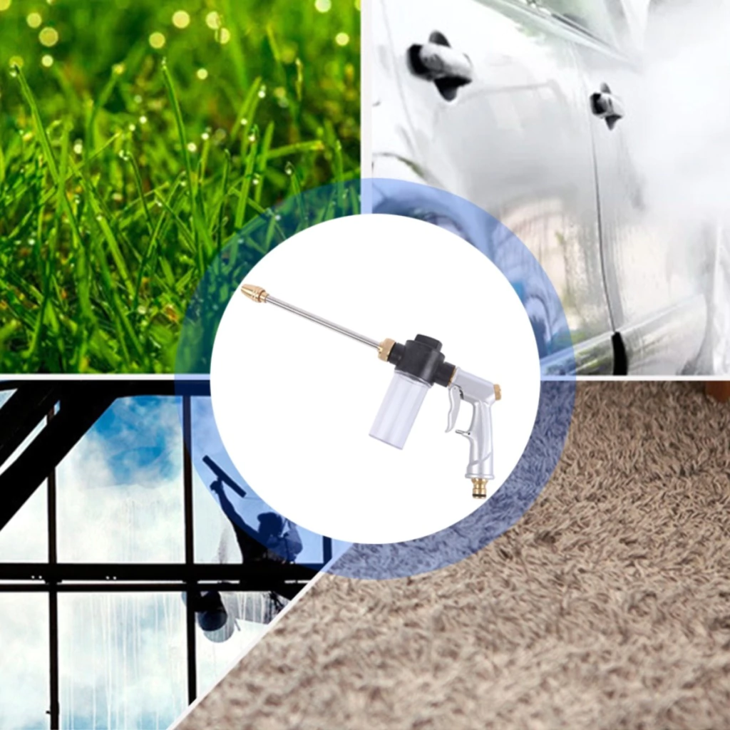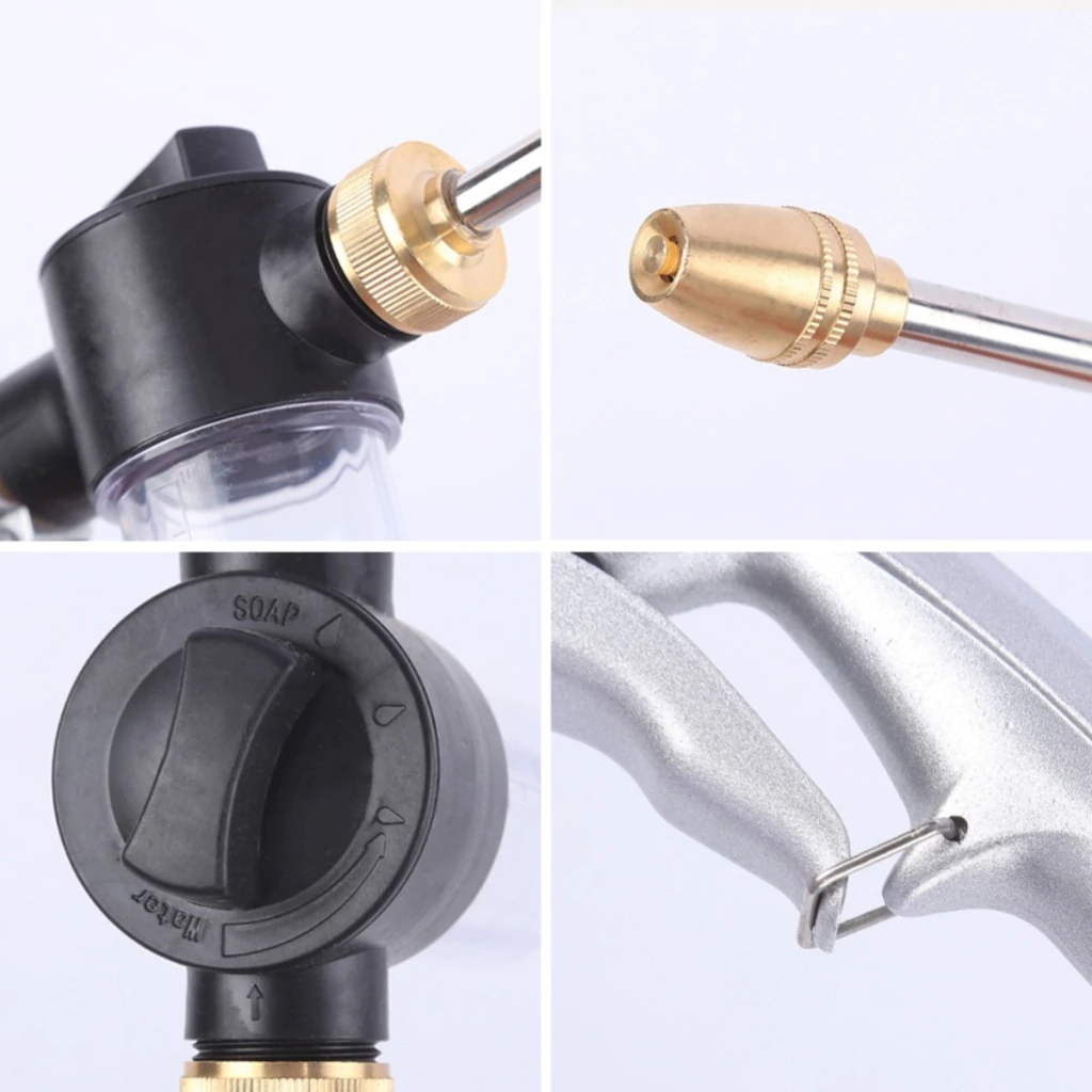 O design ergonômico facilita o uso em diversas tarefas, seja na limpeza do seu barco ou no cuidado diário com o gramado. A pressão forte e a distância de spray de até 10 metros garantem eficiência e economia de tempo!