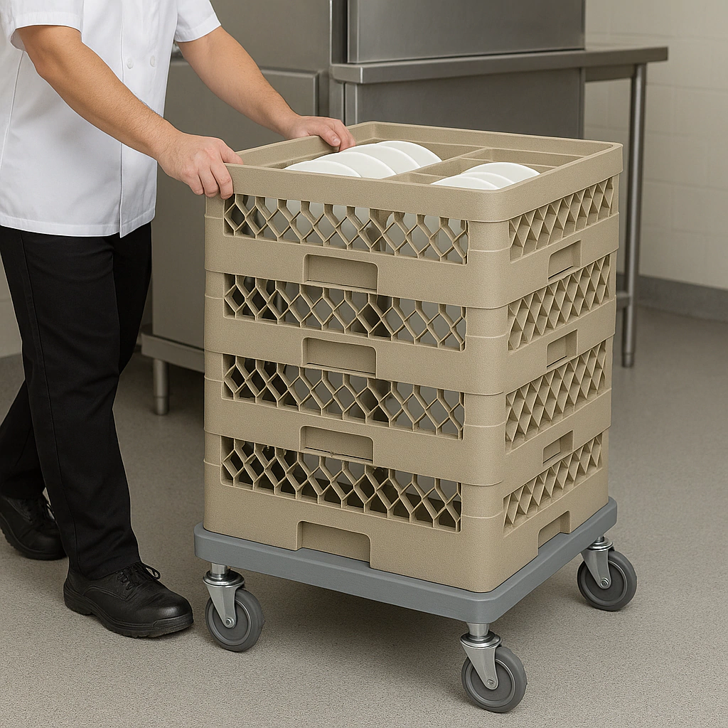 Fabricado em polipropileno de alta resistência, é durável mesmo em ambientes exigentes como cozinhas industriais e refeitórios. Suas 4 rodas giratórias proporcionam manobras suaves e ágeis, mesmo em espaços reduzidos. 🛞 Além disso, o design higiênico e fácil de limpar garante o cumprimento de altos padrões sanitários no dia a dia.