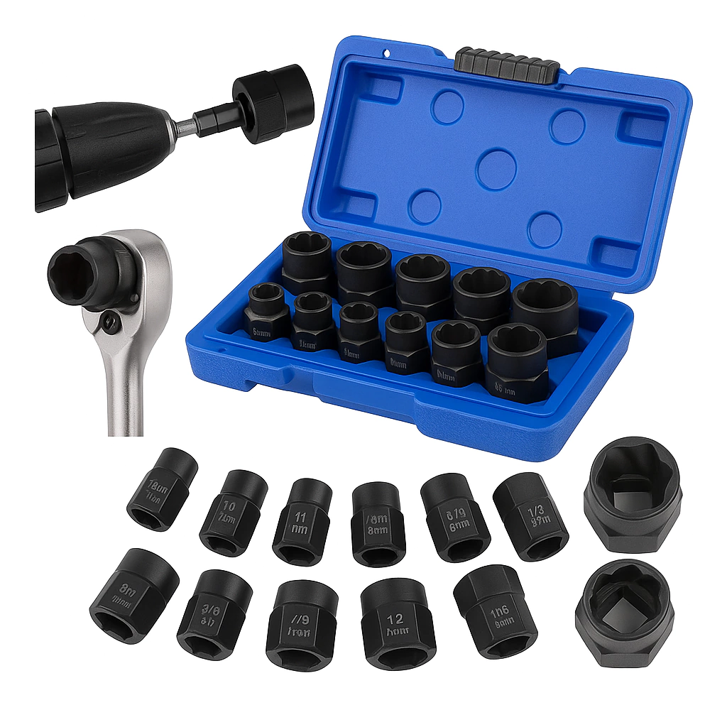Parafusos quebrados ou porcas corroídas não são mais um problema! Com o Kit Extrator de Parafusos e Porcas Danificadas com 13 Peças, você remove com facilidade componentes presos, espanados ou oxidados 🔩. Um item essencial para oficinas mecânicas, trabalhos industriais ou reparos domésticos.