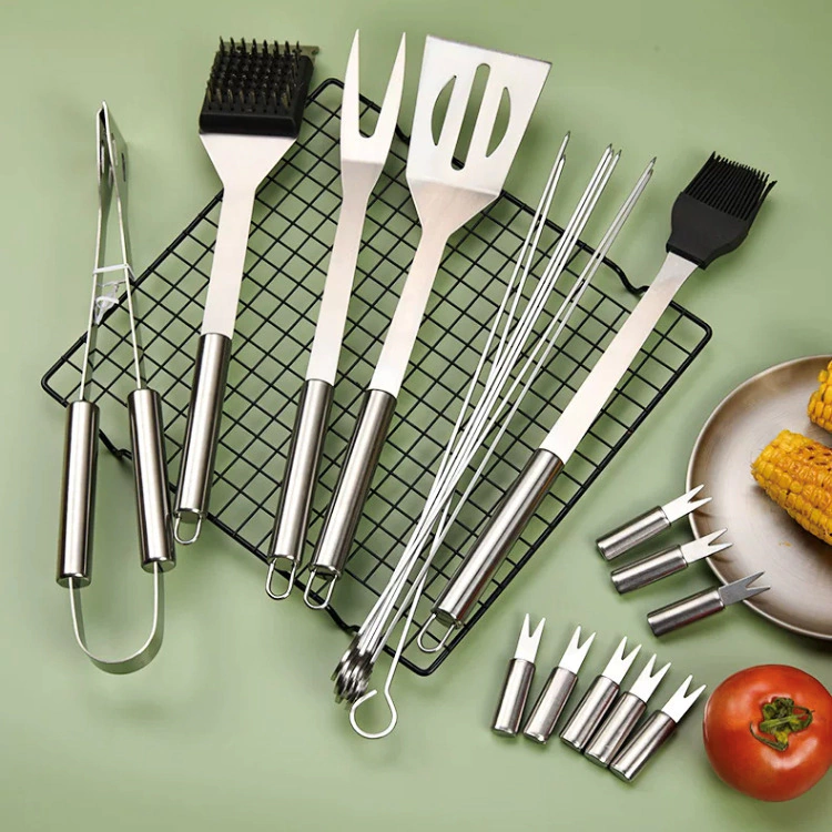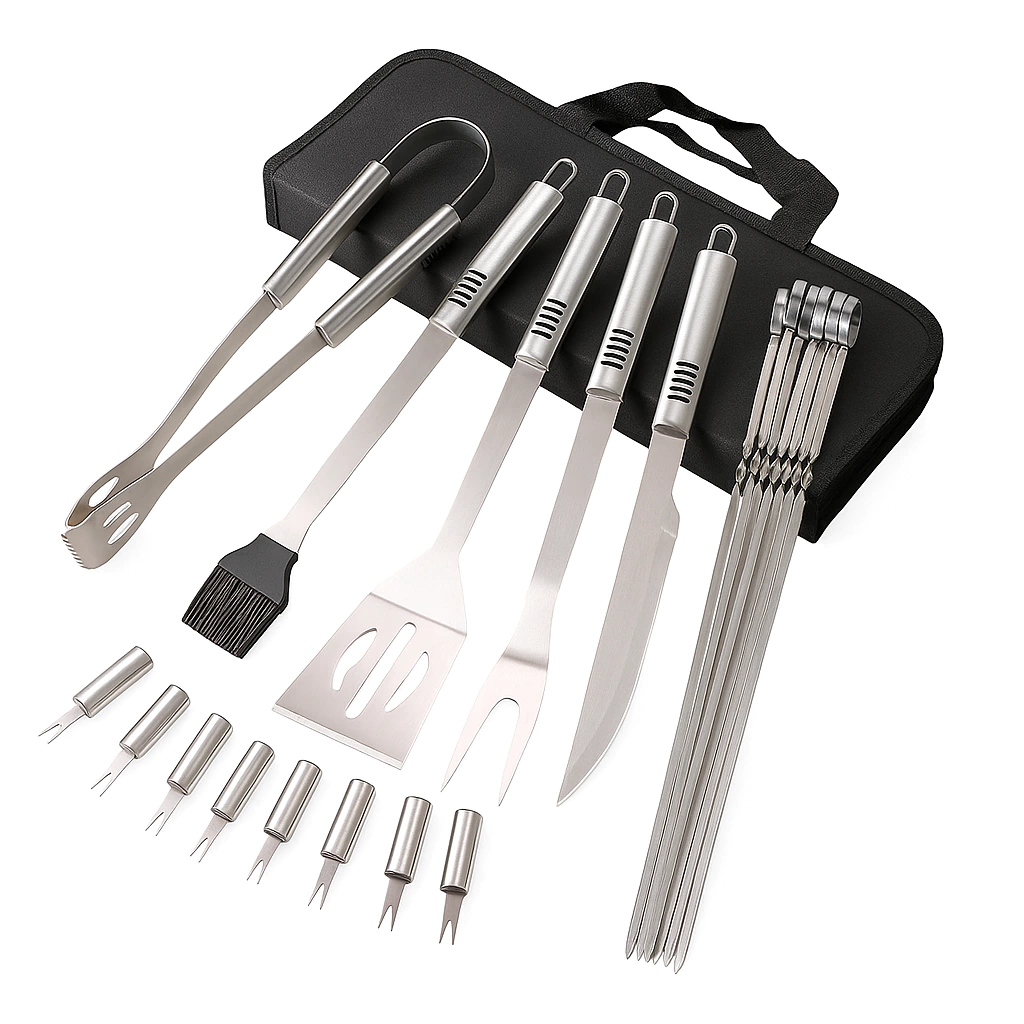 🔥 Complete sua experiência de churrasco com este Kit de Acessórios 17 Peças em Aço Inoxidável!