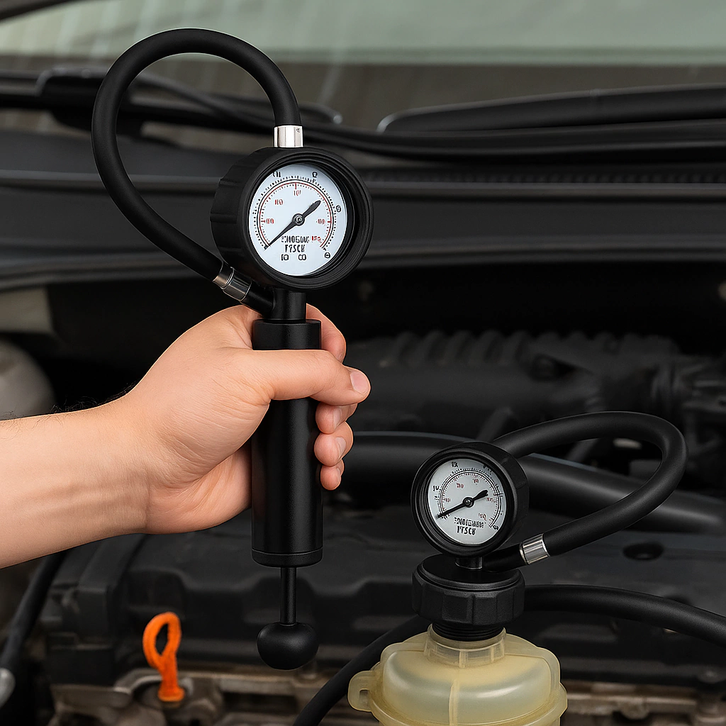 Garanta um diagnóstico preciso e profissional com o Kit Testador de Pressão para Sistema de Arrefecimento 🔧🚗. Essencial para oficinas e mecânicos, este kit permite identificar com rapidez vazamentos em mangueiras, abraçadeiras, tampas, conexões e selos do sistema de arrefecimento, seja em radiadores comuns ou selados.