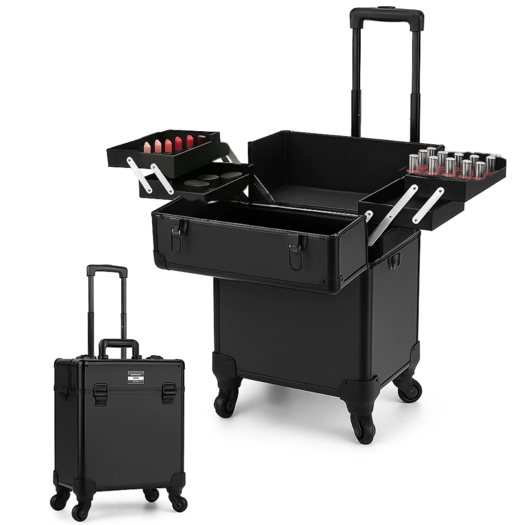 A Maleta Profissional com Rodinhas é perfeita para maquiadores, cabeleireiros e profissionais da beleza que precisam de mobilidade e sofisticação no dia a dia. Com design moderno e estrutura reforçada em ABS, ela oferece amplo espaço interno e resistência para transportar seus itens com total segurança.