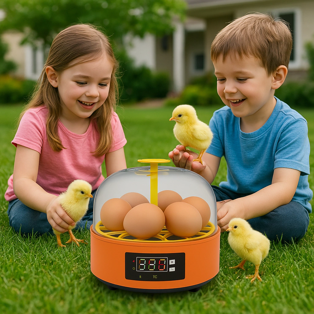 Sua tampa transparente permite acompanhar a evolução da incubação em tempo real, e o método criativo de viragem manual — como os ponteiros de um relógio — torna tudo mais interativo e divertido, especialmente para crianças em projetos escolares.