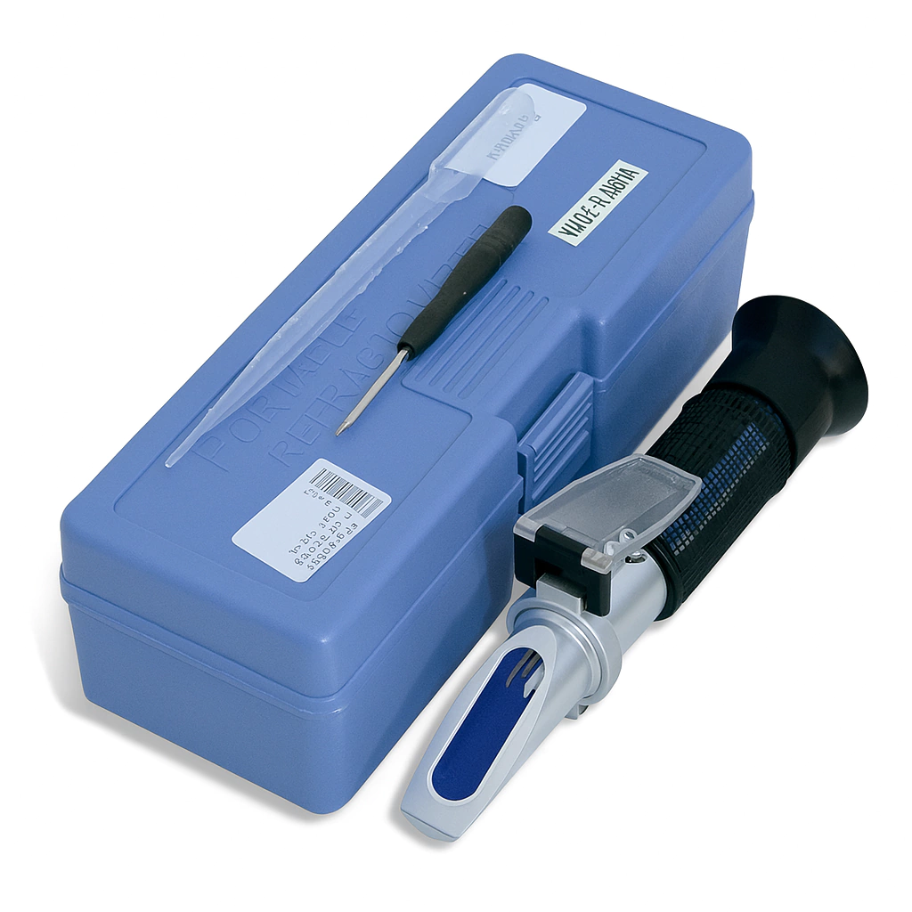 Com escala ampla de 0 a 90% Brix e resolução de 0,2%, é ideal para uso profissional e também por produtores artesanais. A compensação de temperatura automática (ATC) entre 10°C e 30°C garante leituras estáveis em diferentes ambientes. Seu corpo em alumínio com revestimento em borracha proporciona firmeza, conforto e durabilidade ao manuseio.
