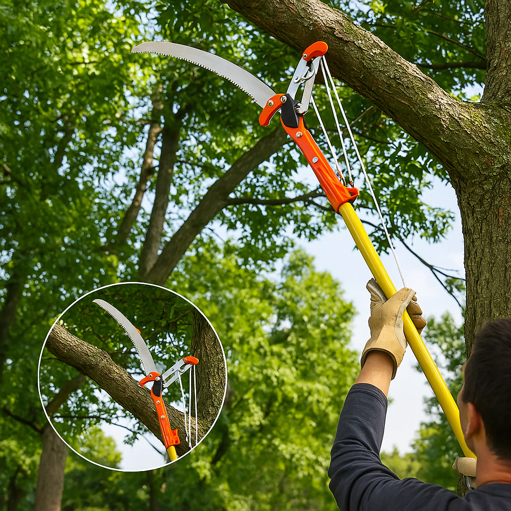 Realize podas com segurança e eficiência com este podador 2 em 1! Equipado com lâmina de aço resistente e sistema de polia dupla, ele corta galhos altos e grossos com mínimo esforço, sem necessidade de subir em escadas. Ideal para jardinagem, manutenção de quintais, sítios ou áreas verdes. 🌳✂️